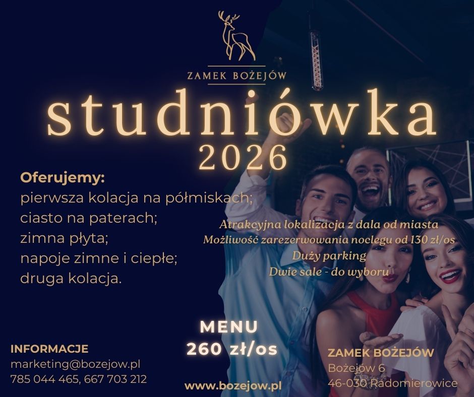 Zapraszamy na Studniówkę 2026 w Zamku Bożejów!